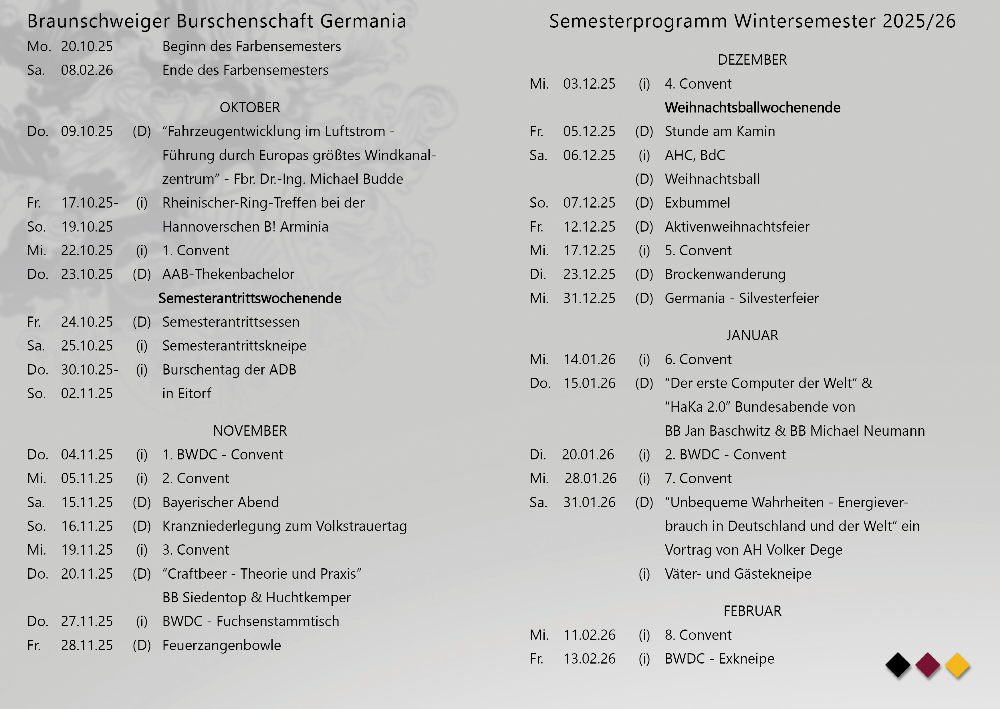 Semesterprogramm hier sind unsere Veranstaltungen und wichtigen Termine aufgelistet Semesterprogramm Unser Programm für dieses Sommersemester.